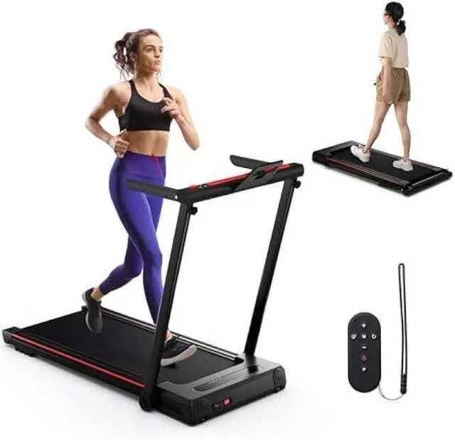Foldable Design & Easy Storage: This treadmill can be folded into a compact size for easy storage and space-saving. With 2 built-in transportation wheels on bottom, you can easily move it from room to room. When done with your workout, you can fold and store the treadmill in a corner or under the bed/sofa.