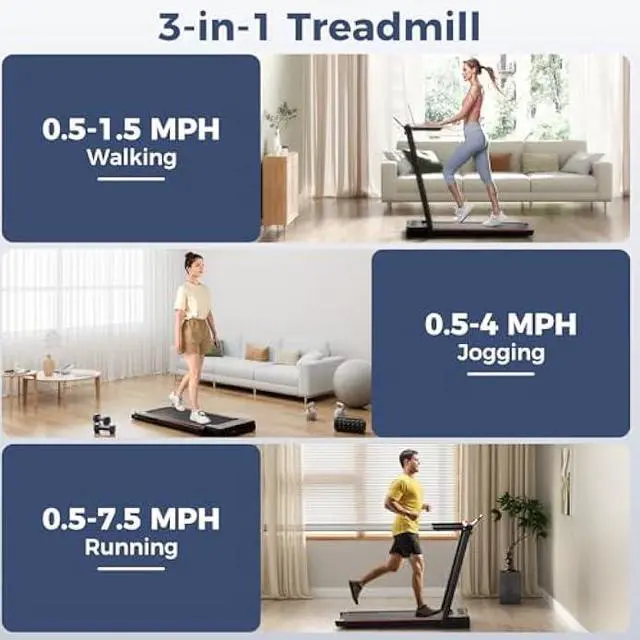Exercise Mode: Creatively equipped with a 26.7 x 13 large table top, this home gym running machine enables you to enjoy workout while working. Remove the desktop, and you could run with the handrails on or jogging with handrails folded.