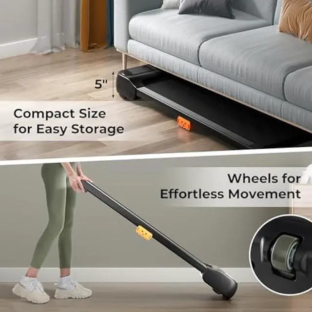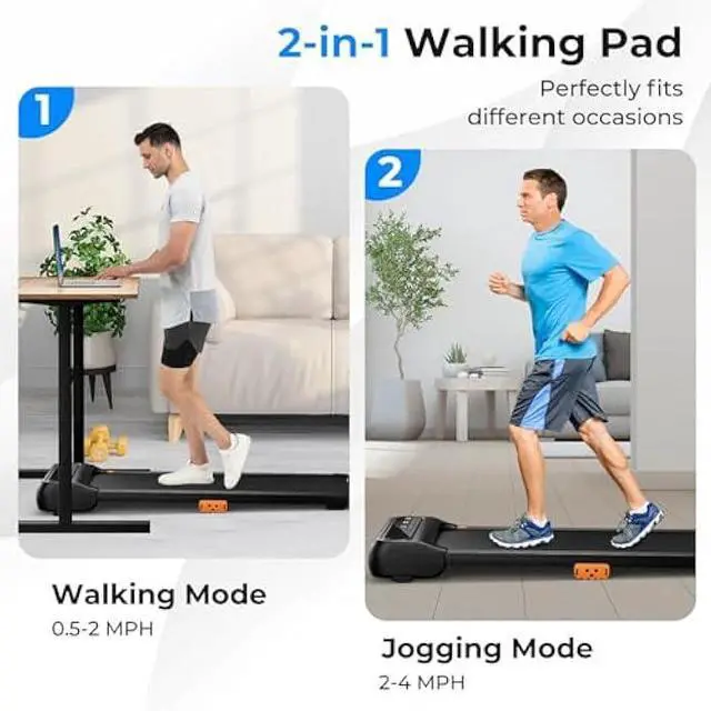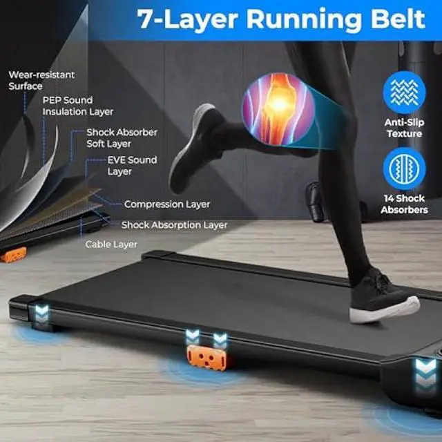Strong Motor for Silent & Safe Exercise: Featuring a 2.25 HP high performance motor, this under desk treadmill could offer you wide speed range of 0.5 -4 MPH and 2 exercise modes of walking and jogging. Meanwhile, with 7 layer-running belt and 14 shock absorbers at bottom, this walking treadmill offers safe and quiet workout environment (noise lower than 50dB), especially suitable for office and apartments.