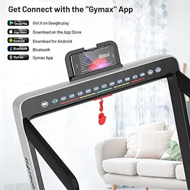 Various Functions to UseWith a mobile phone bracket, this treadmill allows you to chat with friends or watch movies while exercising. The built-in speaker allows you to connect to your mobile phone and exercise with melody. Please do not use the treadmill on carpet to avoid overheating