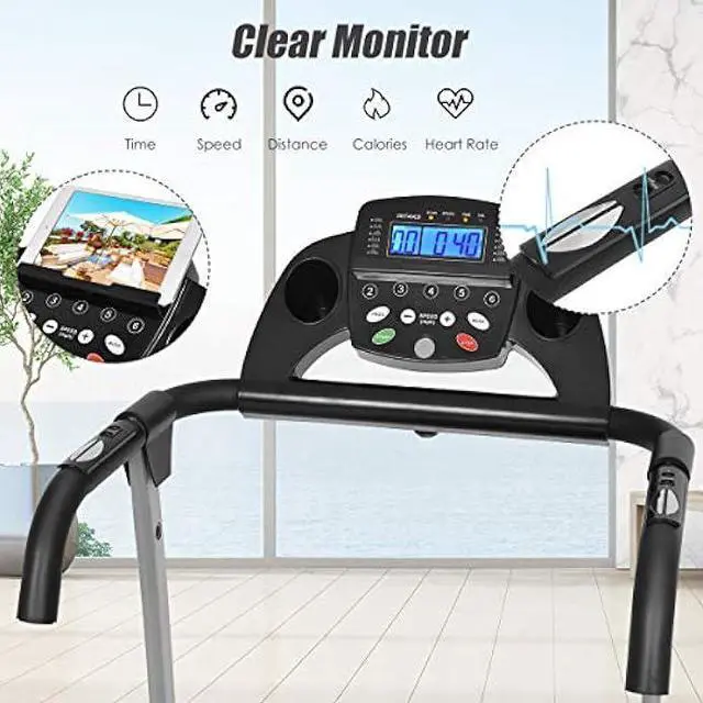 Space Saving Design & IPAD/Mobile Phone Holder -- Goplus treadmill can be easily folded, with wheels it is easy for moving and storage. Put your mobile phone or Ipad on the holder, you can talk with your friends or watch movies when you work out on this treadmill.