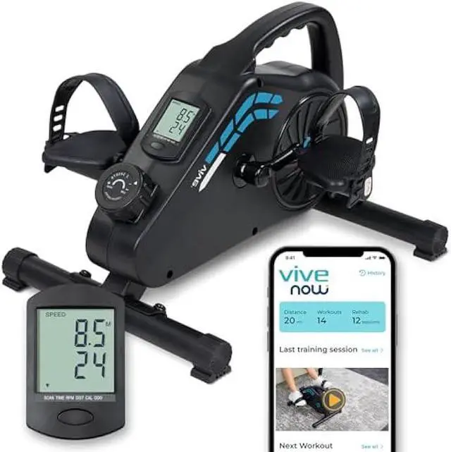 BLUETOOTH COMPATIBLE LCD DISPLAY: Track your progress with the built-in LCD display that shows real-time information regarding the time, distance, RPM, and calories burned while using the pedal exerciser. With Bluetooth compatibility, this exercise device can be connected to the ViveNow App for a portable and convenient way to track your progress.