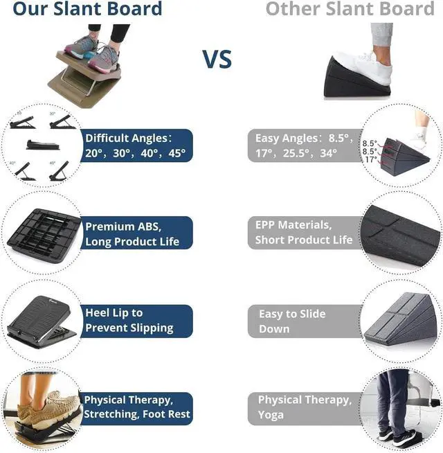 Durable ABS Material for Long-Lasting Use: Crafted from high-quality ABS, this slant board for physical therapy is built to withstand frequent use. Unlike regular yoga wedges or foam calf stretchers, it offers premium durability for both fitness and rehab exercises.
