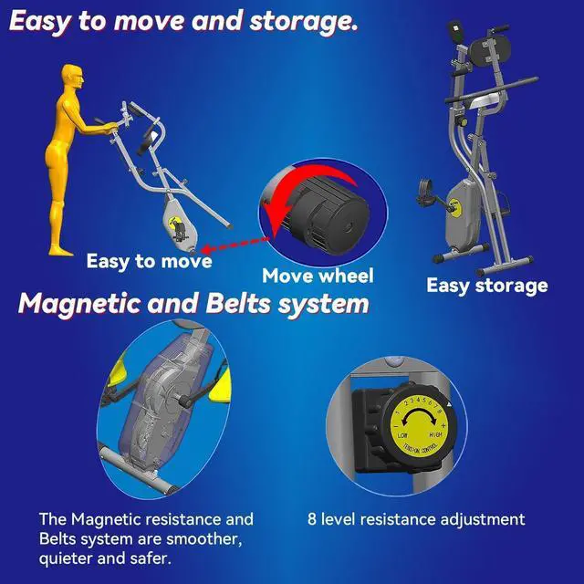 Easy to Move around and Store: This folding exercise bike is the foldable structure. It has the rollers on the front Stabilizer. So the X-bike is easy to move around and store. The triangle support is stronger and safer