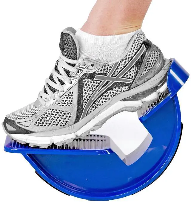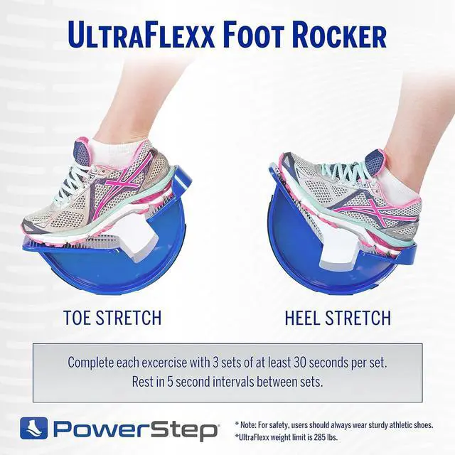 NON-SKID ROCKER BOTTOM: The non-skid rocker holds the foot in a stable position while stretching. It is recommended for use with sturdy athletic shoes.