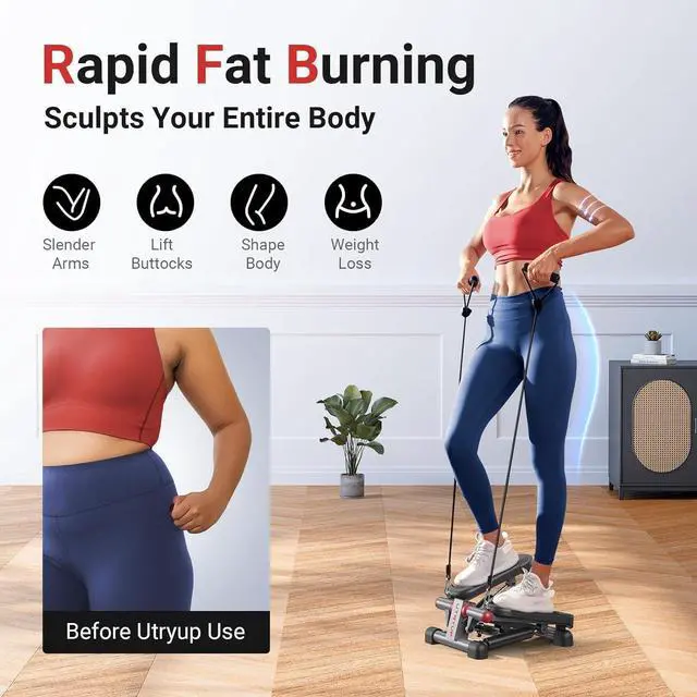 [ Effective Full-Body Workout ] The UTRYUP mini stepper comes with resistance bands, providing a comprehensive workout that targets your entire body. Ideal for slimming and toning, this exercise stepper for home workouts helps you burn calories, strengthen muscles, and achieve a sculpted physique.