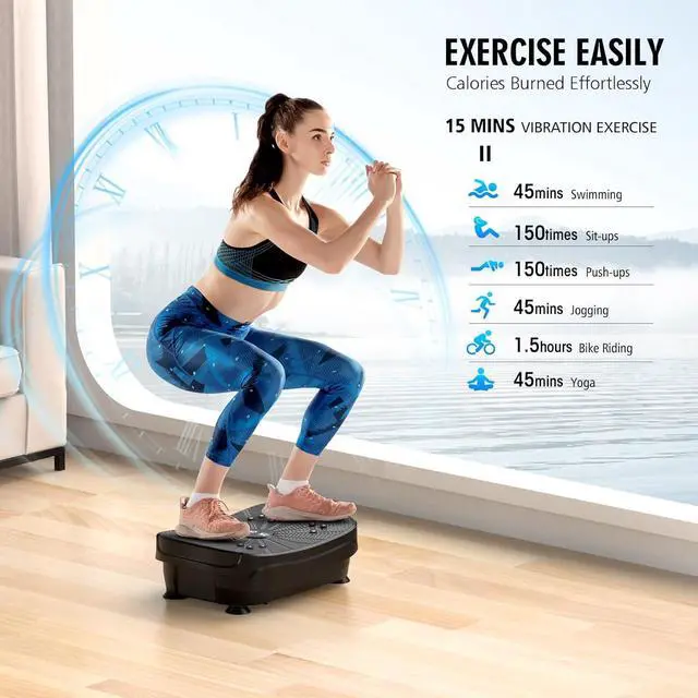 REMOTE CONTROL & EASY TO STORAGE - With the remote control, you can remotely control the machine. The LED lighted display allows you to easily see the time and speed for a clear view of your workout. Compact vibrating plate design with only 7.5 kg weight, can save space, easy to carry and store. Turn any place into your personal gym