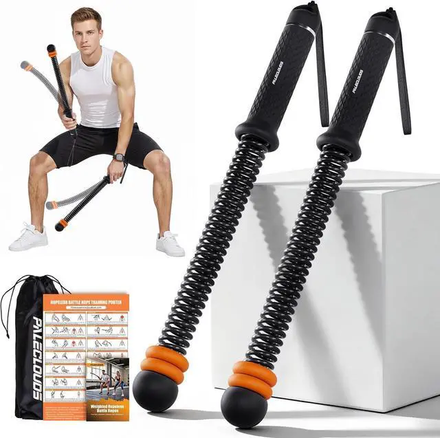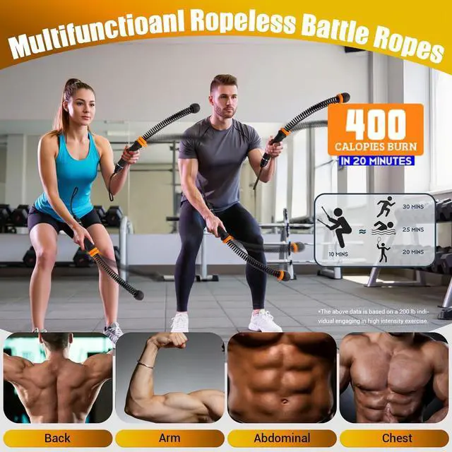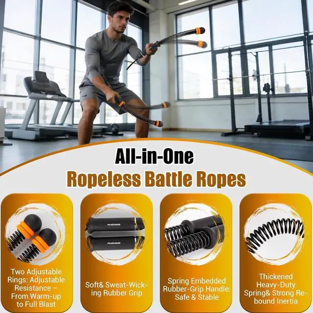 [Portable Battle Ropes] Built to last with high-resilience springs and anti-rust coating, this weighted ropeless battle rope offers powerful rebound and durability. Designed for safety, the cordless training ropeless ropes fitness features a secure embedded handle to prevent slipping. Compact and portable, the battle flex stores easily and is ideal for use at home, the gym, or travel. Quiet in use and floor-friendly, the portable battle ropes enable effective, worry-free workouts.
