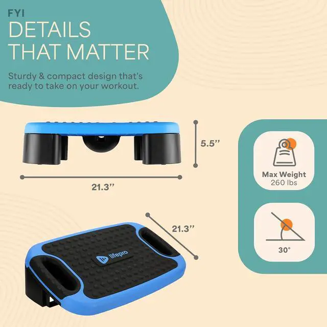 ENHANCE AEROBIC FITNESS - Boost your endurance training with the Lifepro aerobic step platform. This workout step platform helps you burn calories, increase circulation, and elevate your heart rate. Perfect for small steppers for exercise or anyone looking to elevate their aerobic fitness levels.