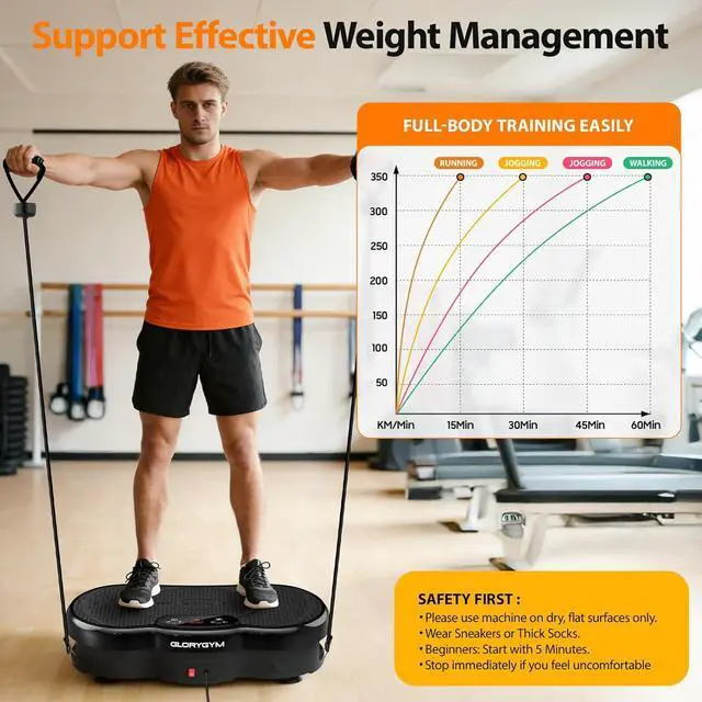 FULL BODY ACTIVATION IN ONE SIMPLE STEP: From legs and glutes to core and arms, the vibrating platform engages your entire body at once. Combine vibration training with squats, lunges, or resistance bands to maximize results without high-impact strain