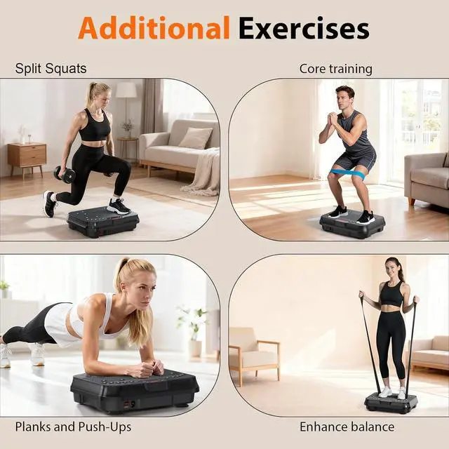 Smart Control & Premium EfficiencyMaster your wellness with our vibration plate! Enjoy remote speed adjustment (1-250), 4 resistance bands for full-body toning, and 10+ targeted modes. Achieve science-backed results like enhanced metabolism, bone health support, and stress reduction in just 10-minute sessions. Experience next-level vibration platform machines that deliver real transformation.