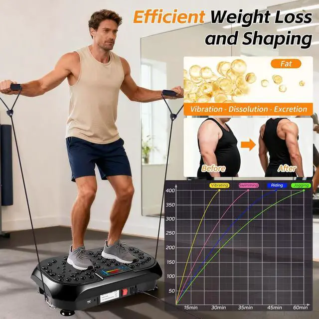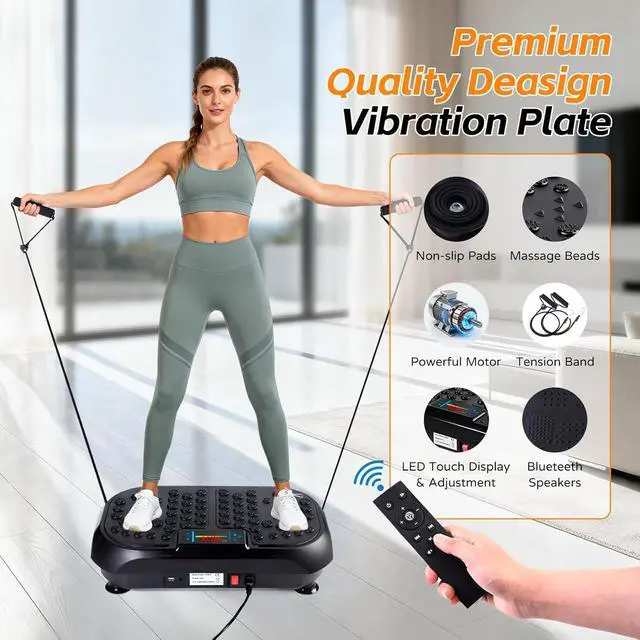 ADVANCED MOTORS & MULTI-FUNCTIONAL DESIGN: JIANYHW vibration platform uses a brand-new motor to ensure sufficient power. Benefit from 120 speed levels, with 2 resistance workout bands, offering various exercise modes to provide a personalized workout experience that targets muscle groups effectively. The anti-slip coating design and shock-resistant ABS shell with 4 anti-slip suction cups base ensure the stability of the vibrating plate and reduce the noise for daily home workouts.