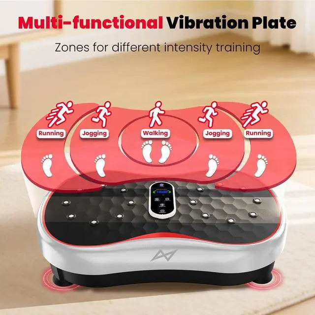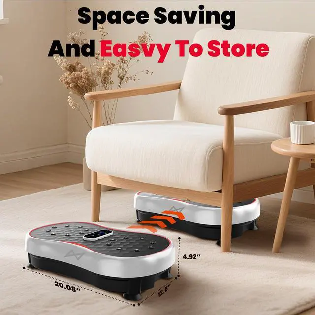 WHY WE CHOOSE AXV VIBRATION PLATE: Magnet health massage function; LED display shows time, speed and burnt fat making your workout visible; Compact size can be used anywhere & easy to carry and store; Anti-slip coating designed; Enhanced upgraded Ergonomic design shell ensures more durability and stability; Comes with Remote control, Resistance Bands and detailed manual... everything you need.