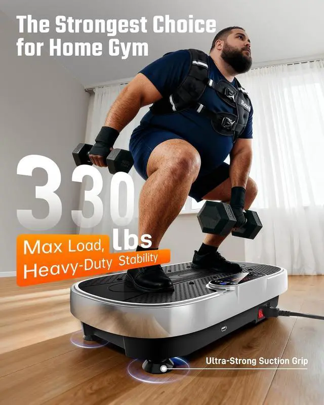STABLE, QUIET & POWERFUL Engineered for performance and safety. This heavy-duty piece of workout equipment features a durable ABS shell and four anti-slip suction cups for maximum stability. The powerful 200W motor runs quietly and supports up to 330 lbs, ensuring a secure and effective workout every time