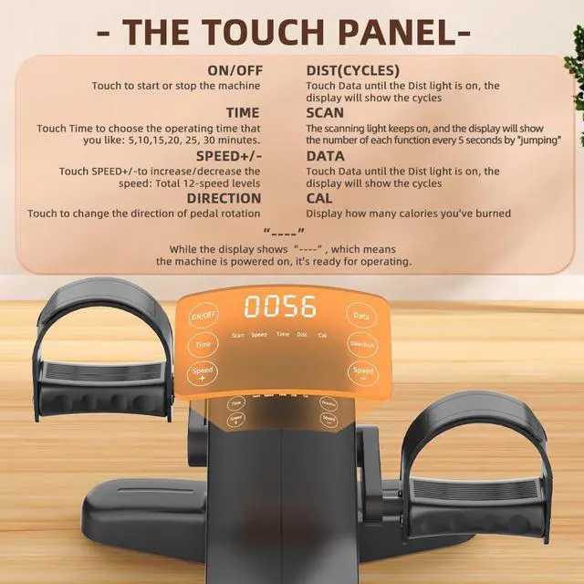 LCD Display & Remote Control: Clear LCD screen shows time, speed, distance, and calories. Combined with remote operation, this under desk exerciser offers easy monitoringideal as an electric pedal exerciser for home or mini bike exercise machine for home for seniors