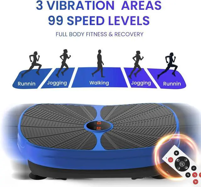 99 ADJUSTABLE VIBRATION SPEEDS: Vibration plate speed range from 1 to 99, with 99 having the maximum intensity to suit different needs, remote easily controls the speed at the click of a button, and 15 minutes on this vibration platform equals 1 hour of jogging