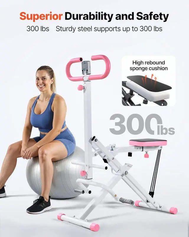 High Load Capacity: With a robust build, this squat machine features a heavy-duty Q235 steel frame and anti-slip rubber feet, supporting up to 300 lbs for confident exercise. The padded seat and supportive backrest keep the spine aligned, ensuring controlled squats that target the glutes, quads, and hamstrings
