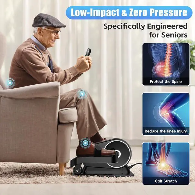 Ultra-Quiet Design Exercise in Silence at Home or Office! This under desk elliptical features hyper-quiet magnetic driving. Its a quiet elliptical machine and low decibel elliptical that runs whisper-quiet, no disruption to calls or focus. As a reliable indoor elliptical trainer and desk side exerciser, you can stay active anytimeno noise, no distractions!