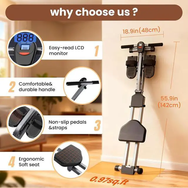 Quick Setup, Easy Storage Lightweight and compact, this rower assembles in minutes and folds to 90° for convenient storage. Transform any room into your personal gym without taking up much space.
