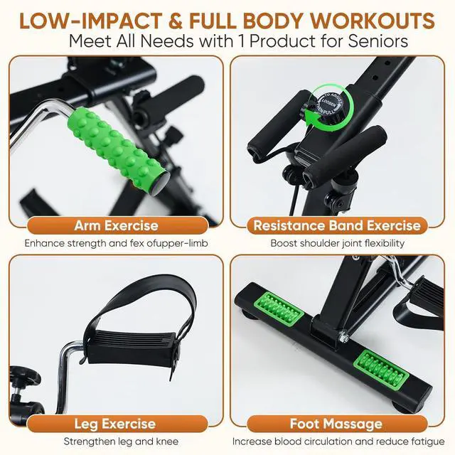 Full Body Workout & RehabZIDAFIT Pedal Exerciser Bike for Seniors provides upper and lower body training, resistance band exercises, and massage. Low-impact cycling improves flexibility, muscle strength, while massage reduces fatigue. Great gift for senior exercise equipment.