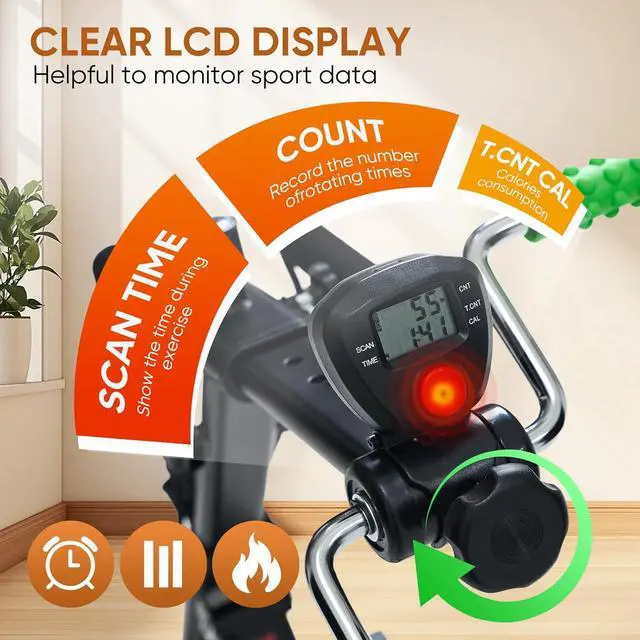 User-Friendly LCD DisplayPedal exerciser features a clear, easy-to-read LCD display for seniors. Track time, counts, total counts, and calories burned with a simple button press. portable bike pedal exerciser, and fitness. Simple operation ensures easy progress tracking.