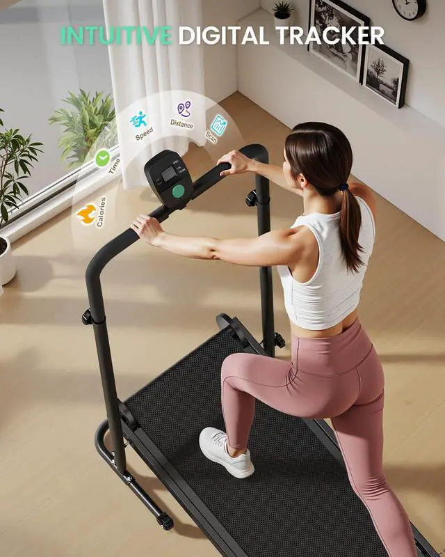 SECURE, NON-SLIP SURFACE & COMFORT GRIPSThe treadmills smooth, non-slip belt ensures stable steps, so you can work out with confidence. Plus, the slip-resistant foam hand grips provide extra comfort and balance during your walk or jog.