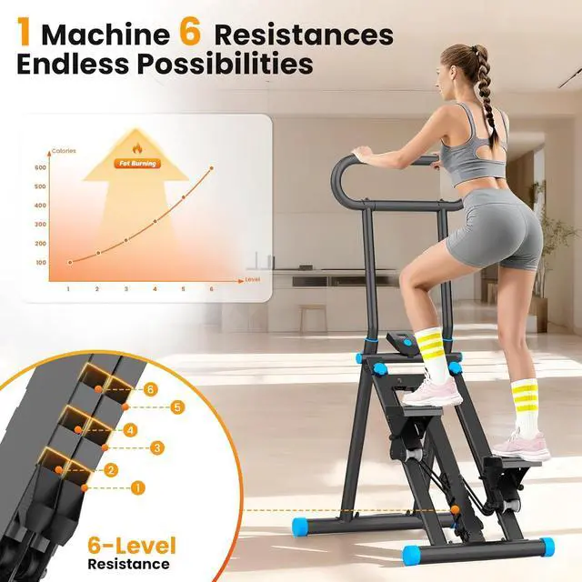 Upgraded 6-Level Resistance - Tailor Your Intensity- The adjustable stair stepper effortlessly switches between light, medium, and heavy resistance levels, matching your fitness goal, from calorie-burning walks to muscle-building climbs