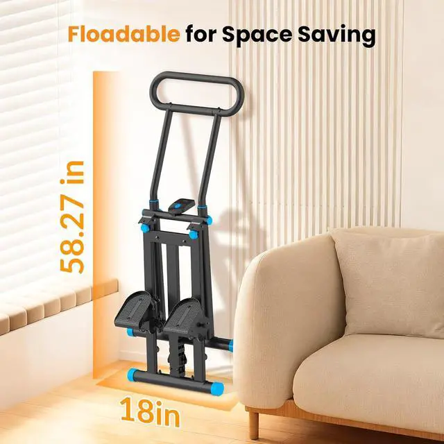 Foldable - Stores in a 1.6 SQ. FT Footprint- The space-saving design effortlessly folds the stair climber to the size of a small suitcase, tucking away in corner or against a wall after your workout