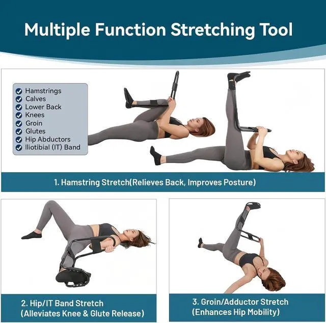 All-In-One Stretching Tool - Deeply targets hamstrings, calves, hips, lower back, groins, knees, and glutes to enhance performance and daily mobility, no need for multiple devices or bands