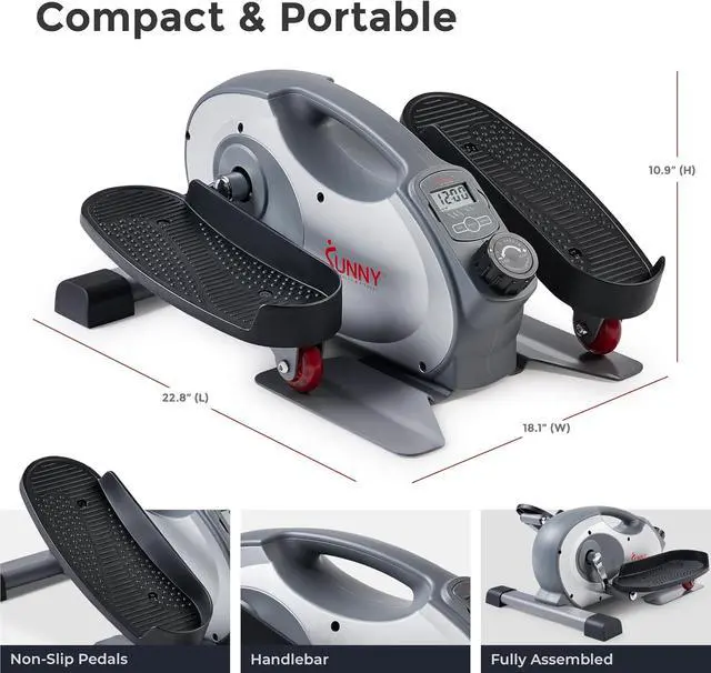 Ultra-Compact Low-Profile Design: Measures only 22.5 inches long by 18.1 inches wide by 10.9 inches high; fits easily under most desks without knee contact; perfect for apartments, condos, home offices, dorm rooms, senior living spaces with limited floor space; low-profile allows exercise in diverse environments