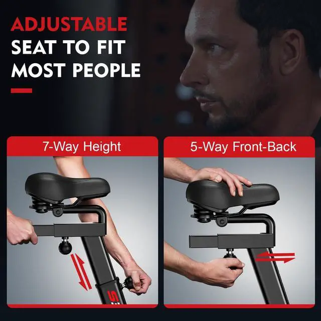 Personalized Fit Exercise Bike This cycle bike with adjustable seat to fit users with different heights. The seat facilitates proper body form during exercises and allows the equipment to precisely conform to the body.