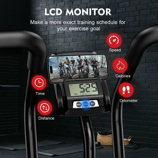 Advanced Bluetooth Performance Monitor The performance monitor tracks time, speed, distance, odometer, and calories burned, which offers an accurate reading of your progress. Could also connect to Bluetooth with your phone or other device. Leverage preset and customizable interval training programs, with personalized targeting of time, distance, and calories to break the limitations of your training routine. Receive real-time feedback on metrics. Place a mobile device on the holder and follow along your favorite fitness videos.