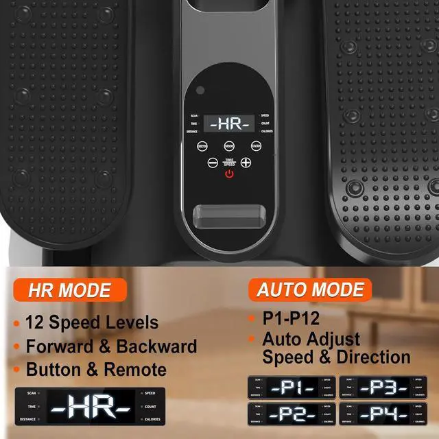 AUTO & MANUAL MODE: This ellipse leg exerciser provides Auto (P1-P12) & Manual mode (12 speed levels) for your choice. Easily control the speed of your workout using the remote control. Pedals can move forward or backword to target your different muscle groups, achieve your fitness goals