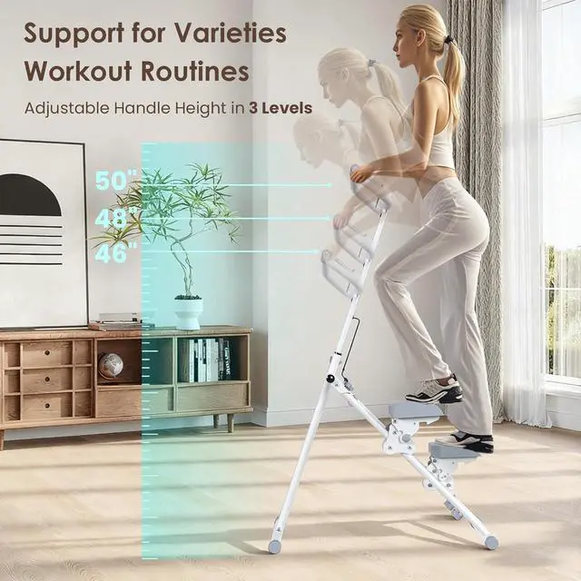 Full-Body Workout: The stair climber offers 3 handle height options48IN, 50IN, and 52IN, 3 pedal inclines 10°, 0°, and -10°This lets you precisely and quickly sculpt your glutes and legs while enhancing full-body fat-burning efficiency.