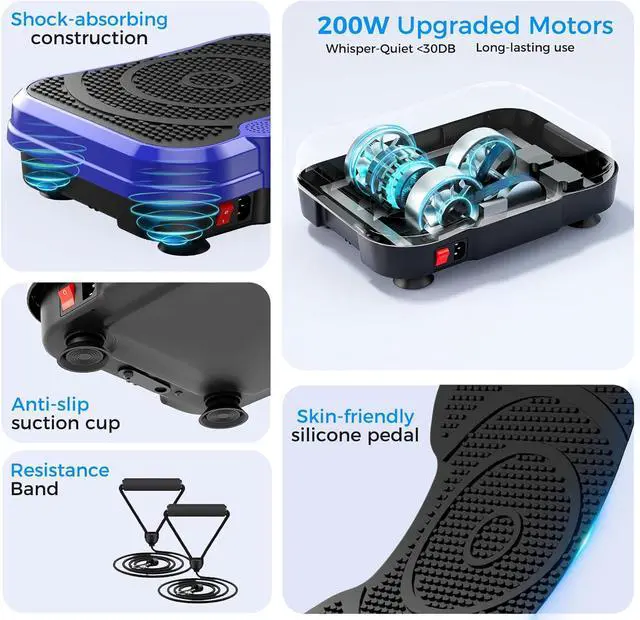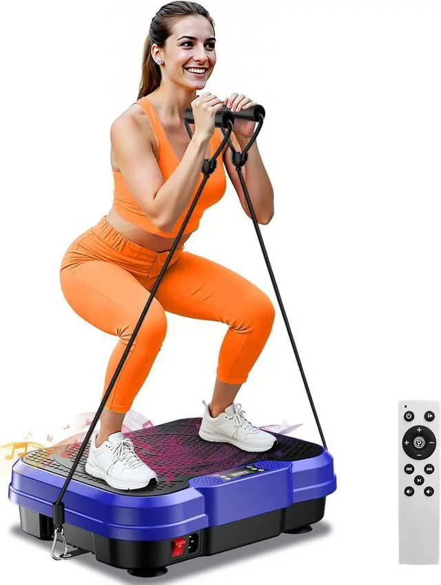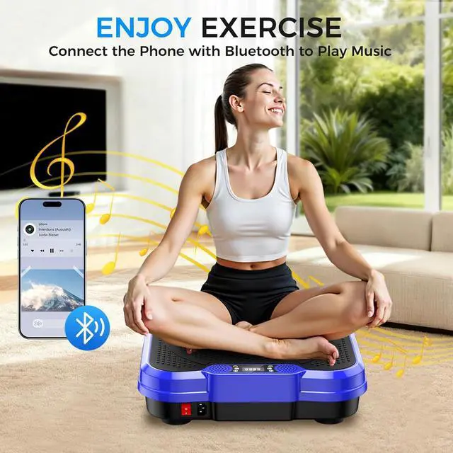 [Full Body Workout with BT Speaker] The vibration plate can be connected to phone via BT and used as BT speaker, you can enjoy the high quality music while exercising. Two resistance bands allow full-body workouts. This vibrating plate can be operated by remote controller or button. The display shows time, speed and mode, making your workout visible