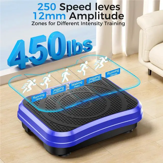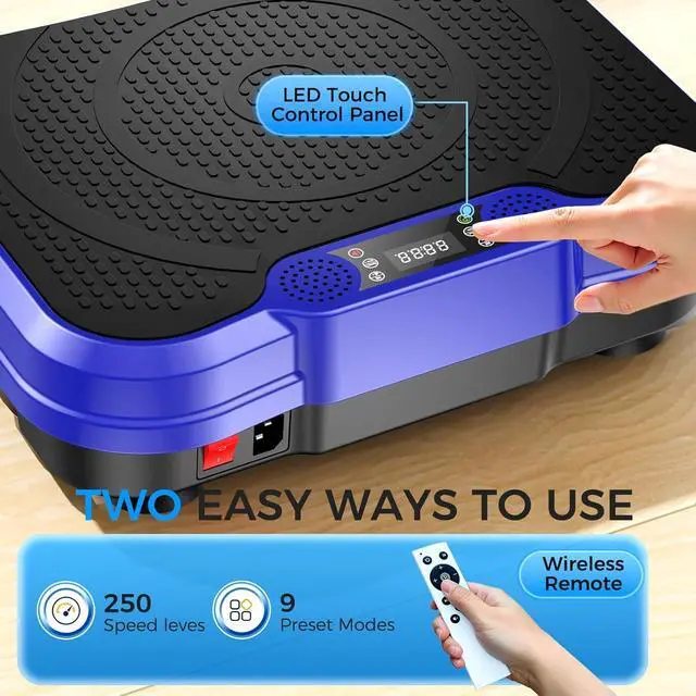 [Multi-purpose Vibration Plate Machine] Simply choose from 9(P1-P9) preset modes to match your fitness level, whether you' re new to vibration plate training or experienced user. You can adjust the speeds(1-250) and time(1-20) to match your preferred exercise intensity in P00. Our vibration platform machines can target different parts of the body, such as waist, abdomen and legs