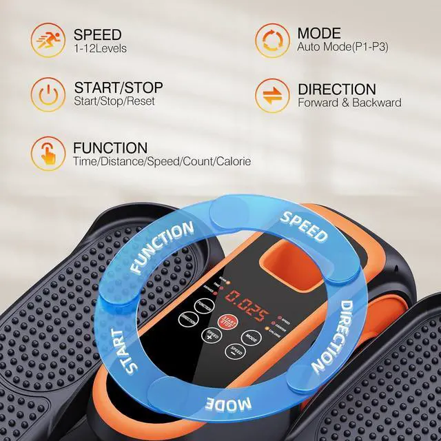 AUTO/MANUAL 2-IN-1: The DUREXO elliptical exercise machine provides auto (p1-p3) and manual (12 speed levels) functions. The pedal can move forward or backward. The 12-level speed is suitable for all stages of exercise, including strengthening leg strength, exercising the body, etc. Effectively exercise leg muscle groups to help you achieve fitness goals.