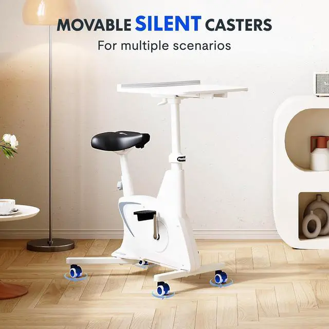 Space Saving Upright BikesThrough scientific design research, the desk bike occupies only 5 sq ft. Equipped with movable silent wheels, you can place it in any corner of your home.