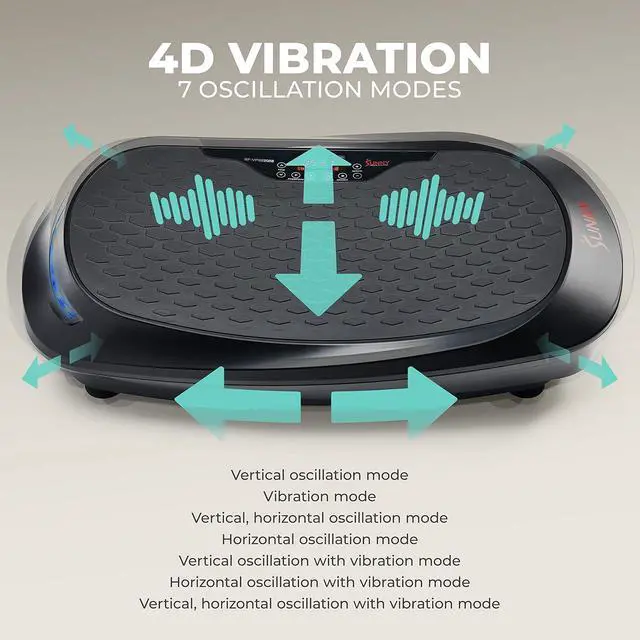 7 OSCILLATION OPTIONS4D Vibration lets you pick from 7 combinations of oscillation and vibration modes to suit the platform to your needs. Foster your muscle growth with settings tailored to you.