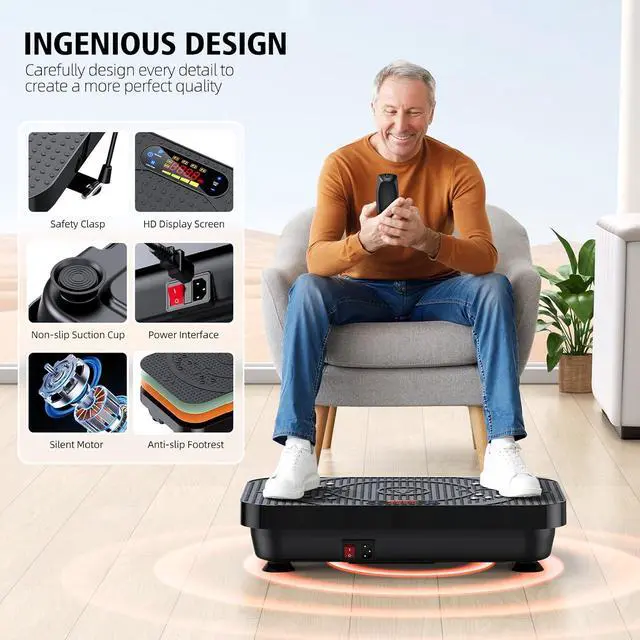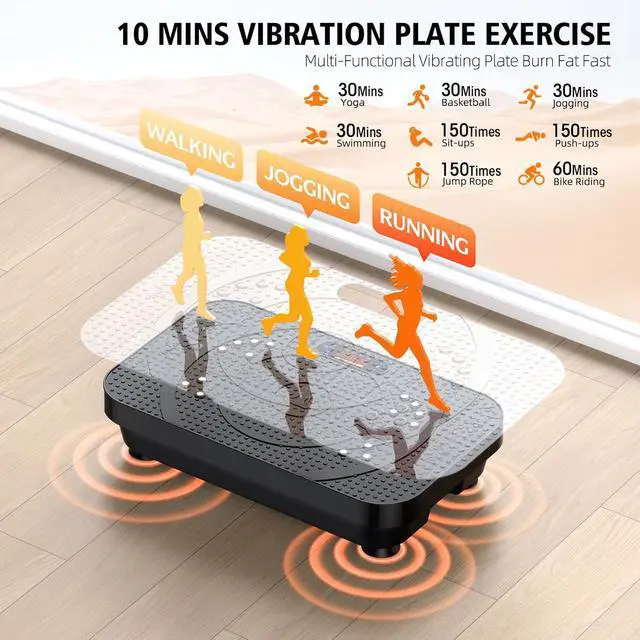 PROFESSIONAL DESIGNThe bottom of the vibration plate also features an anti-slip design, which greatly enhances the stability of the vibration plate and effectively reduces the uncomfortable sensation caused by the vibration. The HD-friendly screen allows for easy visibility of workout time and speed. It is easy to store and carry, as it can be placed under beds and sofas.