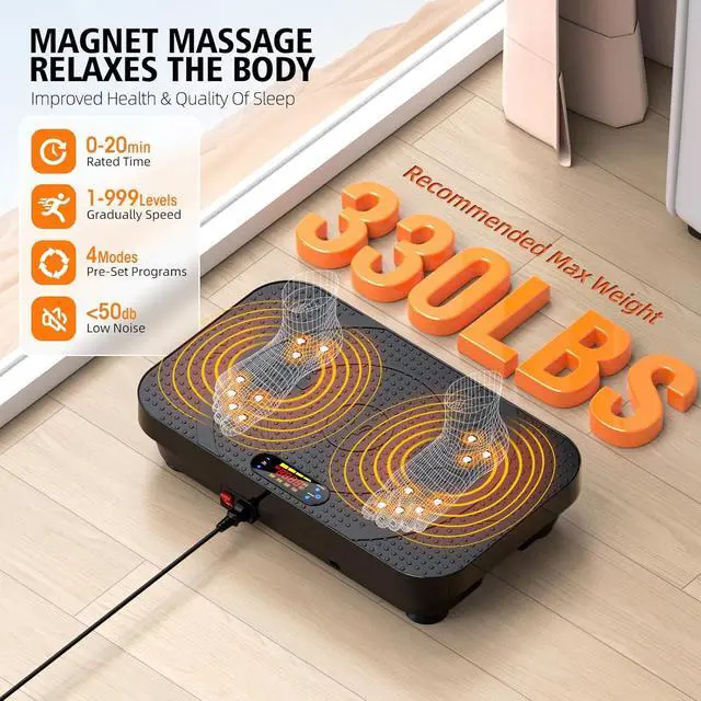 MAGNET MASSAGE POINTSMagnet Massage. Using the vibration plate will not only help us burn excess fat, but it also boosts metabolism, helping you achieve your fitness goals faster. You can easily use the vibration plate whether in the office, watching TV, or in other scenarios