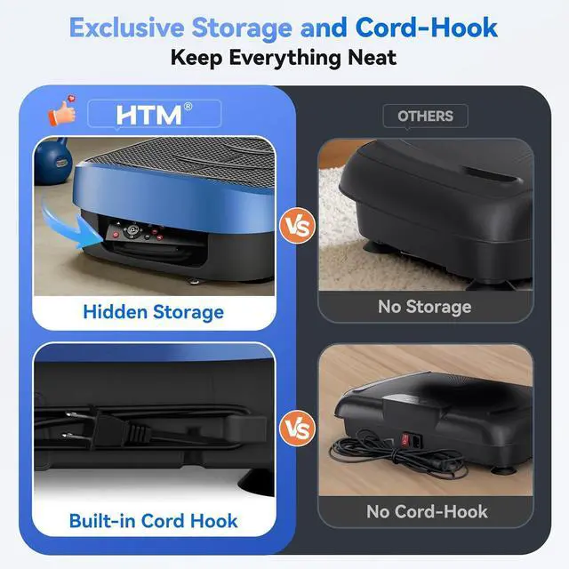 330lbs Capacity and Stable Platform Designed for durability, this vibration plate supports users up to 330lbs with a sturdy, anti-slip surface for secure workouts. Its balanced oscillation ensures stability during exercise