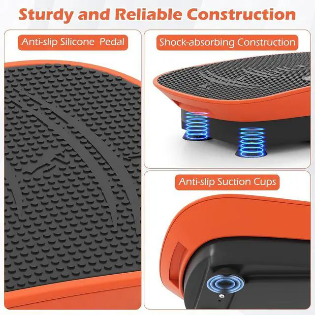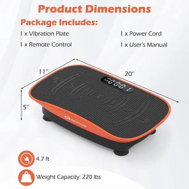 Curved Platform Design Goplus curved vibration plate with unique curved silicone design perfectly outlines the natural curve of your arch, providing secure support for your feet. Besides, it creates natural oscillating motion that' s gentler on joints while maximizing lymphatic drainage benefits.