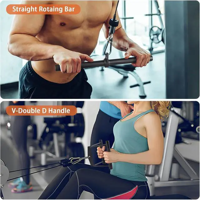 Build the Perfect Body Line The cable attachments for gym is designed to build grip strength, assit muscles around wrists, back, abs, shoulders, lats, triceps, biceps, hip abductors and glute workouts. Whether you want to train upper or lower body, this superior gym cable attachments set does it all. Incorporate this bar into your home gym and start for your V-shape body!
