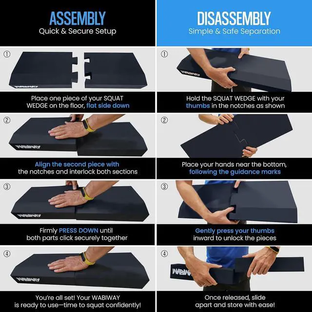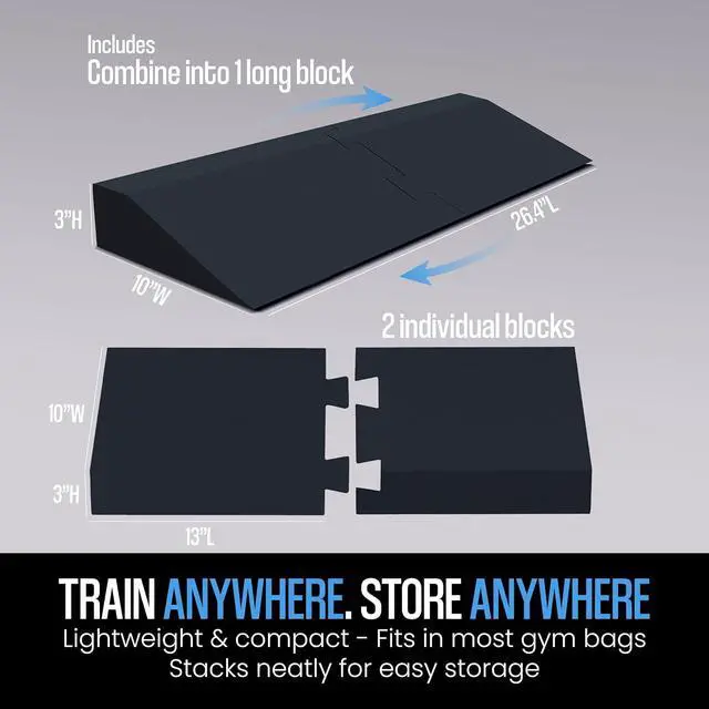 2-in-1 Versatility & Adjustability Combines the benefits of a long slant board and dual squat wedges in one. Use it connected for full support or split for targeted exercises like Bulgarian squats or calf raises. Ideal for users seeking flexibility without sacrificing stability.