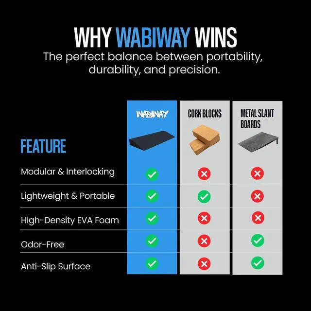 Designed for Squats, Rehab & More This squat wedge block improves depth, reduces joint strain, and enhances posture during squats. Also perfect for stretching, ankle mobility, injury recovery, and warmups. A go-to for ATG knee-over-toes training.