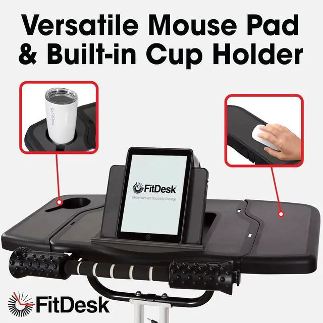 VERSATILE USE FOR ALL DESKS: - Whether youre using an exercise bike, treadmill, or standing desk, the FitDesk Desk Extender adapts to your needs. It provides a solid laptop holder for treadmill setups or a bike desk, ensuring a smooth, ergonomic work experience