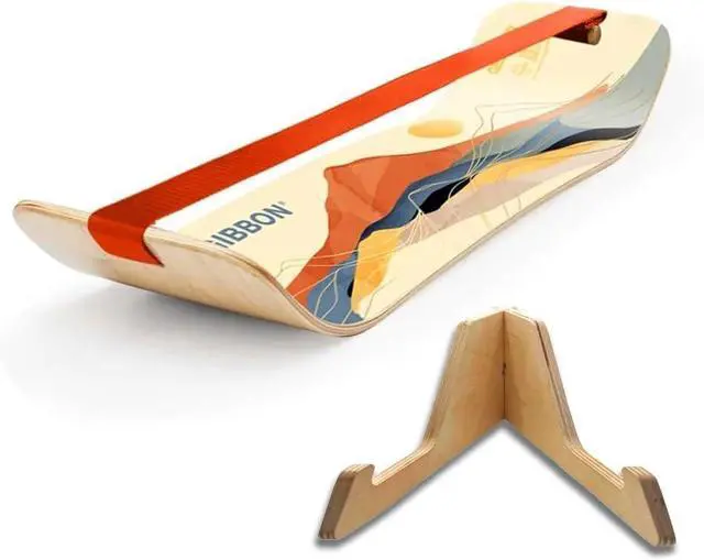 SAFETY-FIRST DESIGN FOR ALL GENERATIONS: Experience the joy of fitness with our user-friendly wooden balance board and stand. Designed with a stable, low-profile and innovative slackline system, the wobble board for kids & adults lets you remain close to the ground, reducing risk. Unlike other balance trainers, this balance board trainer isn' t made of metal or moving parts, making it much safer. This snowboard balance board for kids & adults is a great addition to your at home workout equipment.
