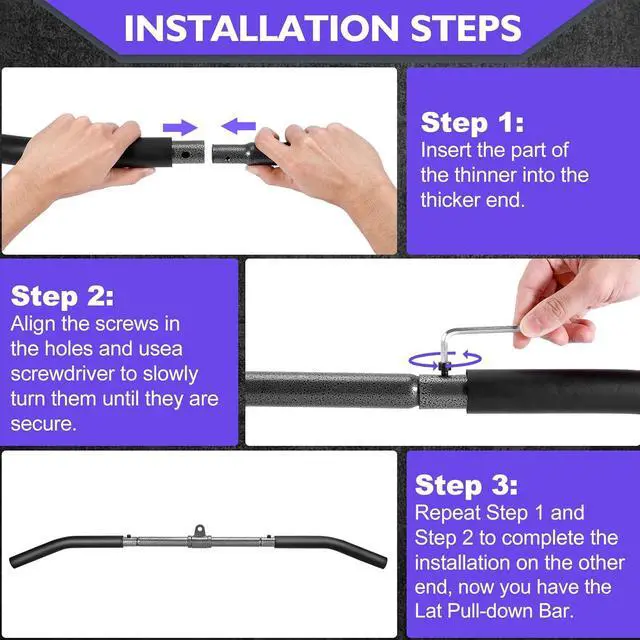 37 Inch Lat Pull Down Bar: An ideal gym accessories for men, can be easy attached to cable pulley system gym, lat machine, ab machine, or home gym training equipment, has non-slip rubber grips so that tricep bar can handle intense resistance and weight