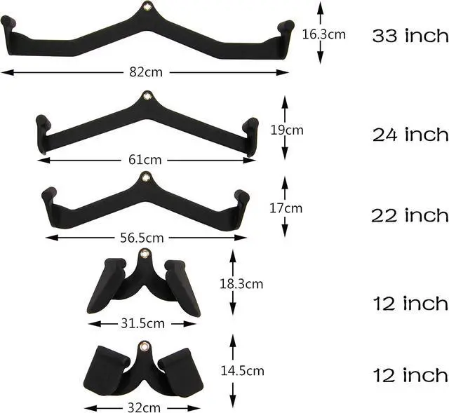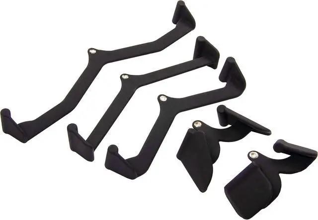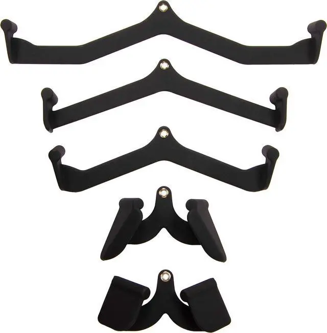 5 pieces included Multiple, varying grip positions to isolate different parts of back and lat muscles SUPER FEEL rubber coating designed for comfort and grip Easily attach to any cable machines